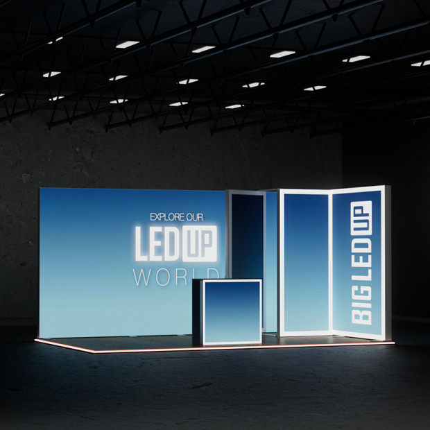 Nutzen Sie REAL BIG LEDUP® freistehend, als ein- oder doppelseitige LED-Leuchtbox für Werbung aller Art. Einsetzbar als Rückwand, Raumteiler, im Showroom oder auf der Messe. Display für Aktionen, Events etc.