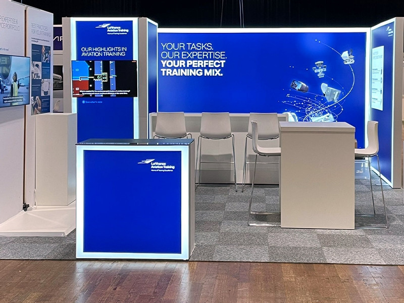 Der frei stehende COUNTER ONE Black ist die perfekte Lösung für Ausstellungen, Messen, Promotionen usw.