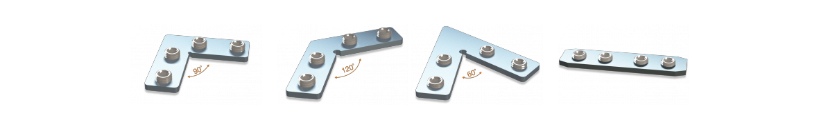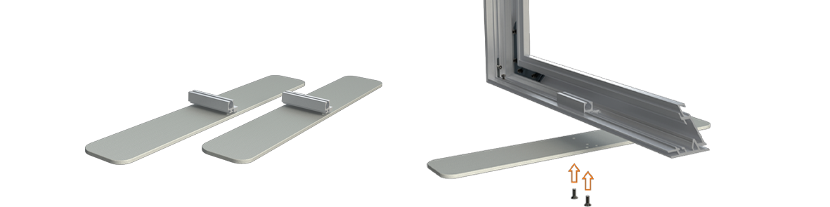 Alle Rahmenprofile werden mit 90°-Eckverbindern verbunden. Für einen einfacheren Transport können Profile auf kleinere Größen zugeschnitten und beim erneuten Aufbau mit geraden Verbindern verbunden werden. Transporttaschen für Profile bis zu 200 cm sind als Zubehör erhältlich.