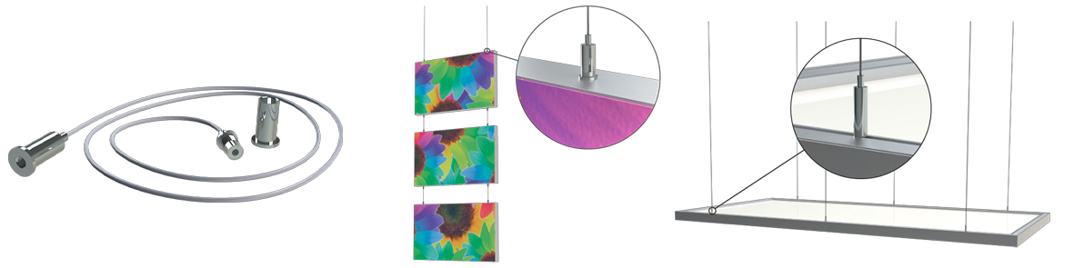 Das System Multi Frame besteht aus einer Auswahl an eloxierten Aluminiumprofilen für zahlreiche Designideen, die als Boden-, Decken-oder Wanddisplays verwendet werden können.