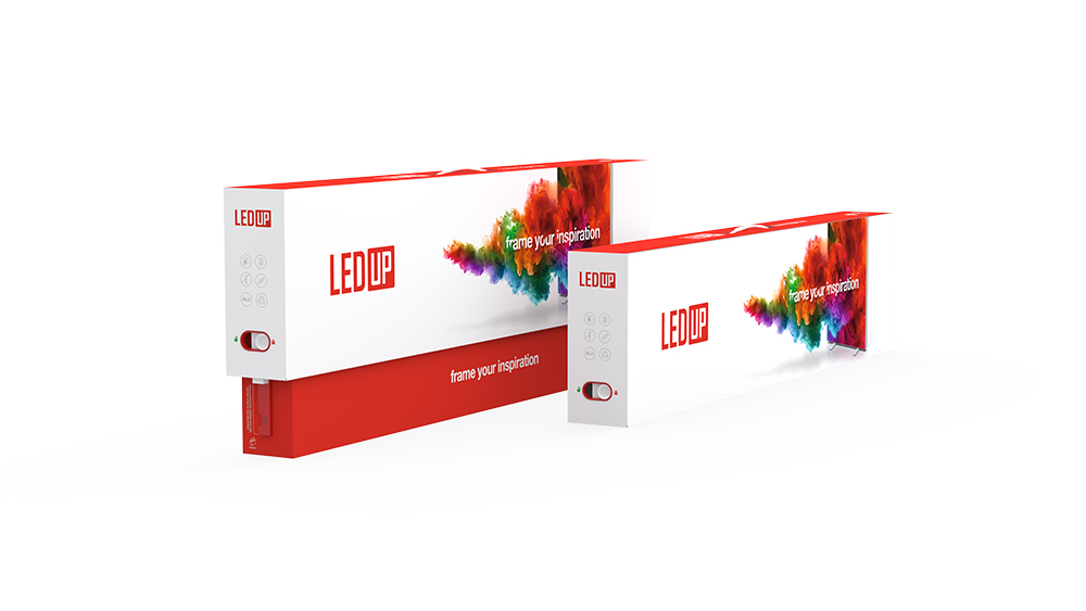 LEDUP® Black mit den Abmessungen 100 x 200 cm wiegt nur 8,7 kg und wird in einer praktischen, umweltfreundlichen Box geliefert, die zudem über ein separates Fach für den einfachen Transport der Digitaldrucke verfügt.