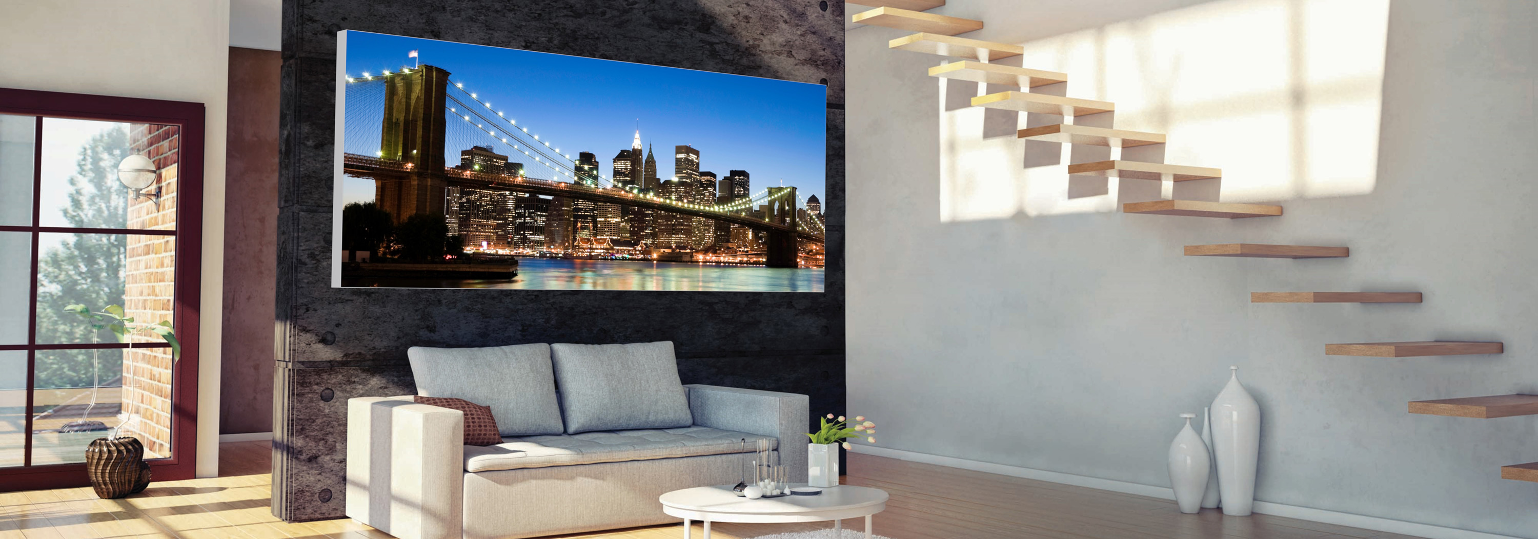 Multi Frame Side Light LED Leuchtkästen können einseitig oder doppelseitig, freistehend, an der Wand montiert oder abgehängt verwendet werden. Die LED-Leuchtkästen arbeiten mit seitlicher Beleuchtung – die LED-Module und die Treiber sind in den gegenüberliegenden Profilen des Rahmens integriert. Die größte Entfernung, die auf diese Weise gleichmäßig ausgeleuchtet werden kann, beträgt 300 cm. Daher können Leuchtkästen mit einer Höhe oder Länge von bis zu 300 cm gebaut werden. Theoretisch ist die Länge/Höhe endlos.
