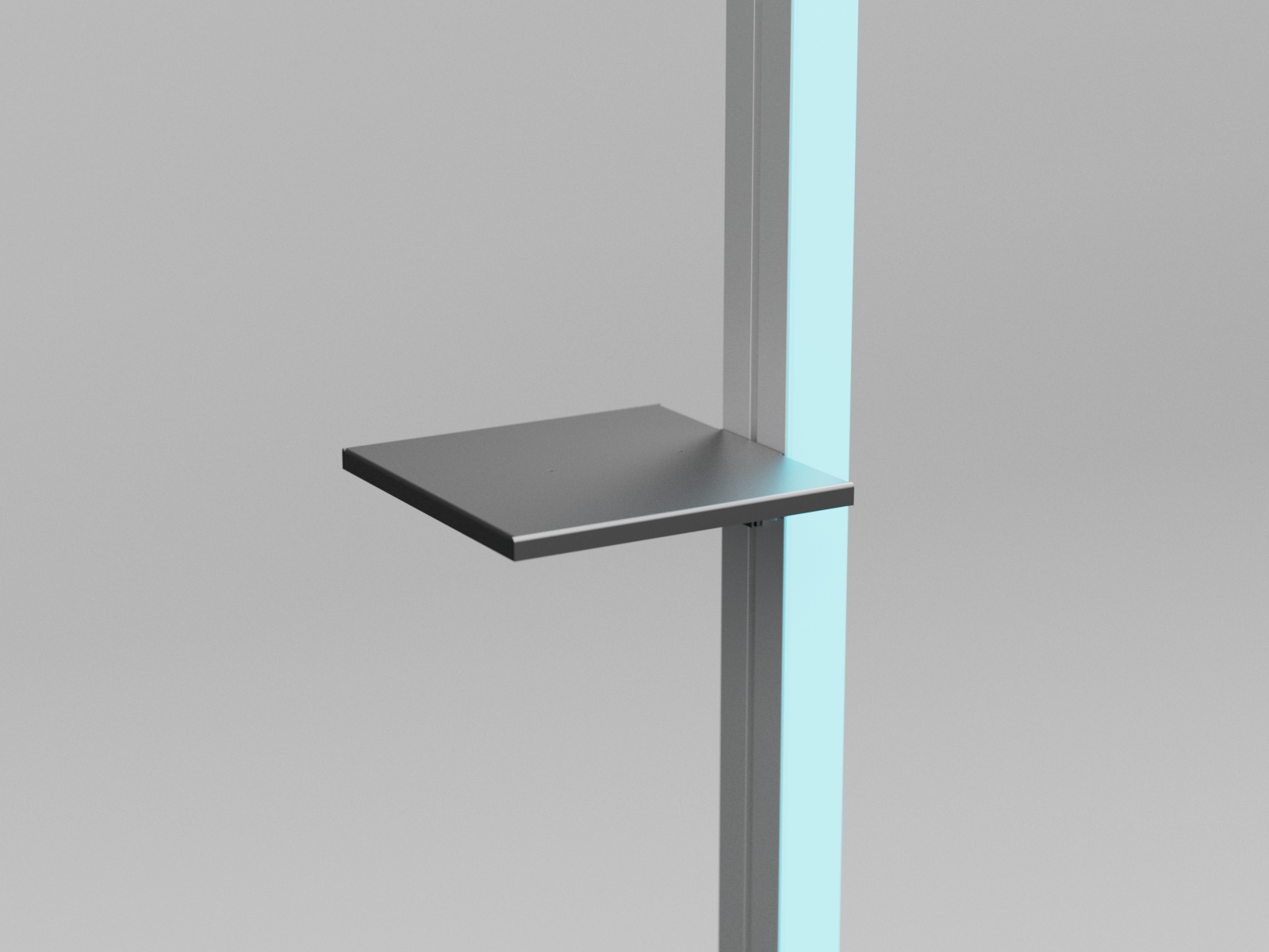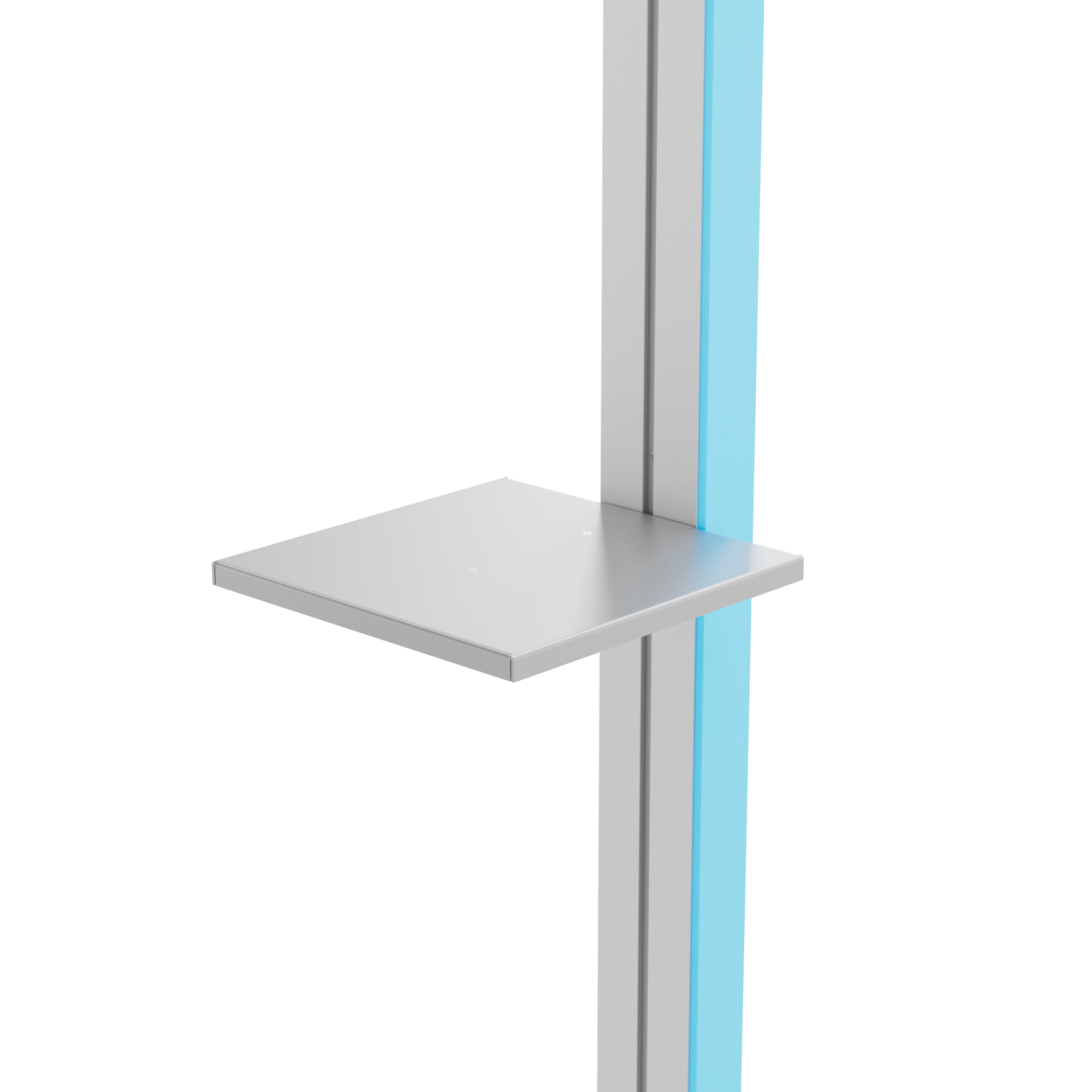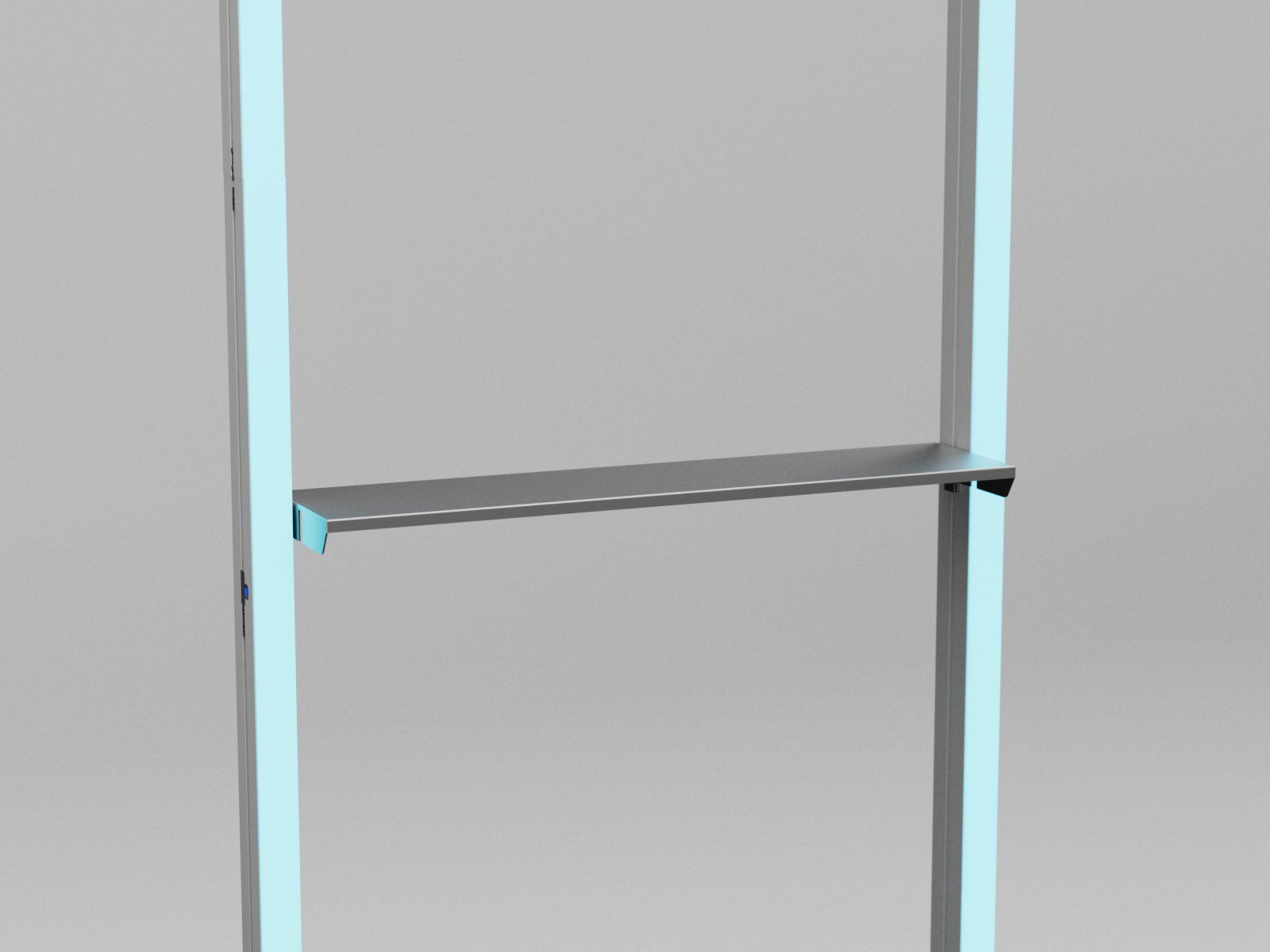 Wie alle LINEUP-Komponenten ist auch das Zubehör Ablage eine einfache, werkzeuglose Montage konzipiert. Es lässt sich über das modulare Stecksystem schnell und sicher an der bestehenden Rahmenstruktur befestigen – ganz ohne Werkzeug oder zusätzliches Equipment.